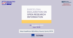 Το Ερευνητικό Κέντρο Αθηνά σε συνεργασία με τη Βιβλιοθήκη της Νομικής Σχολής της ΒΚΠ του ΕΚΠΑ, διοργανώνει τη Δευτέρα 24 Νοεμβρίου 2025, στις 18:00 στο Μικρό Αμφιθέατρο της Βιβλιοθήκης, εκδήλωση για τη Διακήρυξη της Βαρκελώνης για τις Ανοικτές Πληροφορίες Έρευνας.