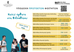 Την Τρίτη 14/10/25 στις 12:30 μ.μ. υποδεχόμαστε τους πρωτοετείς φοιτητές του τμήματος Οικονομικών Επιστημών για μια σύντομη ξενάγηση στη βιβλιοθήκη τους που βρίσκεται στην οδό Ναυαρίνου 13Α, στον 2ο όροφο.