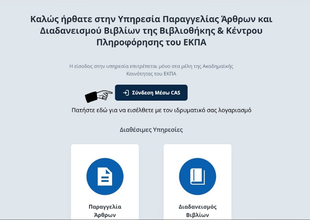 Η Βιβλιοθήκη και Κέντρο Πληροφόρησης (ΒΚΠ) του Εθνικού και Καποδιστριακού Πανεπιστημίου Αθηνών (ΕΚΠΑ), ως μέλος του Συνδέσμου Ελληνικών Ακαδημαϊκών Βιβλιοθηκών (ΣΕΑΒ), για την πληρέστερη κάλυψη των ερευνητικών αναγκών της ακαδημαϊκής κοινότητας και την ενίσχυση της εκπαιδευτικής διαδικασίας, παρέχει στα μέλη της, τη δυνατότητα χρήσης της Υπηρεσίας Διαδανεισμού
