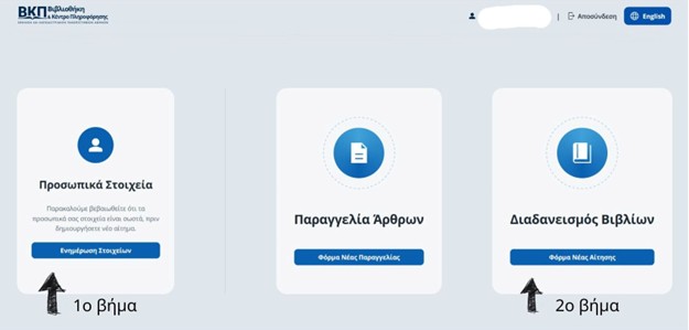 - 2ο βήμα: Επιλέγετε Φόρμα νέας αίτησης για να ξεκινήσει η διαδικασία καταχώρισης των βιβλίων που θέλετε να διαδανειστείτε.